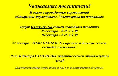 С 6 по 7 декабря в 25-метровом бассейне ФОК "Дельфин" города Канска, состоялись соревнования по плаванию «Открытое первенство города Канска». Старт принимали юноши и девушки 2016 года рождения и старше. Всего более трехсот спортсменов из школ плавания городов Зеленогорска, Дивногорска, Красноярска, Канска, Сосновоборска и п.Кедровый приняли участие. Среди обучающихся МБУ ДО СШОР "Олимп" на старт вышли 11 спортсменов: Белышева Ксения, Беляков Марк, Борисов Данила, Валуев Никита, Волков Максим, Кравец Варвара, Мазалов Михаил, Маркин Глеб, Сафронова Серафима, Скачков Юрий, Томилова Варвара. Результаты соревнований Поздравляем ... Читать дальше » |