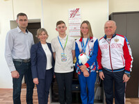 Возрождать и сохранять традиции - дело важное, нужное! Личная встреча, поздравления и разговор с призерами, победителями спортивных соревнований для директора МКУ "Комитет по делам физической культуры и спорта города Зеленогорска" Ольги Владимировны Кныш, становится регулярной практикой. Даже при огромной загруженности. Вчера состоялась встреча, прозвучали добрые слова поддержки в адрес юных пловцов, которые недавно вернулись из г. Санкт-Петербурга со Всероссийских соревнований по плаванию "Веселый Дельфин". Бронзовый призер Софья Папазян, Сергей Лой, показавший 18 результат среди тысячи участников соревнований, тренер-преподаватель Виктор Михайлович Авдеев и директор Спортивной школы олимпийского резерва "Олимп" Иван Федорович Полютов собрались за круглым столом в кабинете директора МКУ "КФиС". Подробности встречи и фото можно посмотреть в официальной группе МКУ "КФиС" в социальной сети "Вконтакте". Статья и фото | |