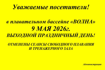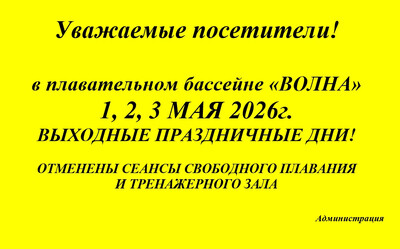 1, 2, 3, 9 мая 2026 года в плавательном бассейне "Волна"