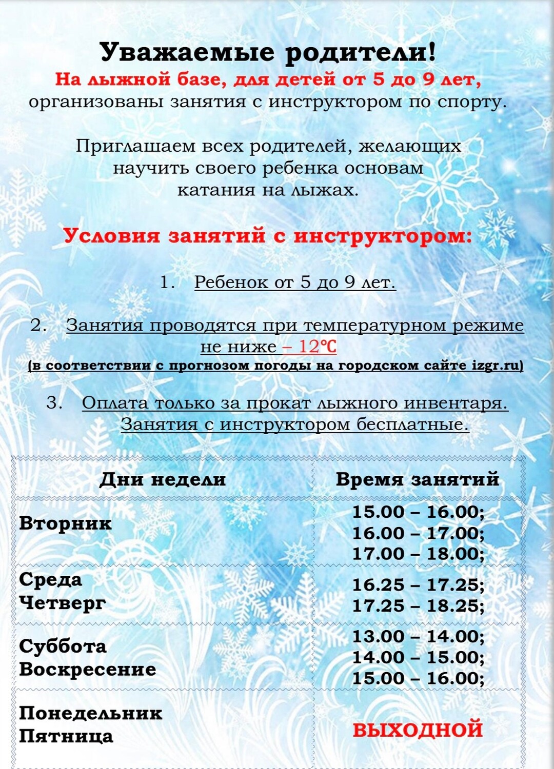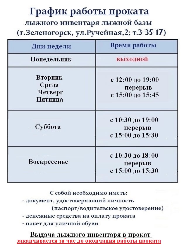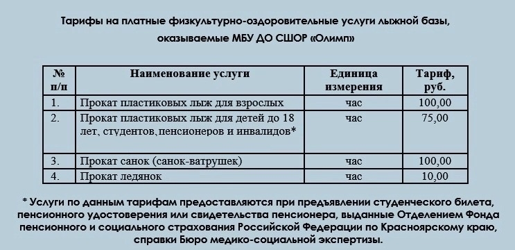 - расчет за прокат лыжного инвентаря осуществляется только за наличный расчет
